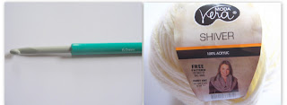 MC (shown here in White colour): 100 grams/85 meters of super bulky yarn (brand MODA Vera Shiver 100% acrylic)