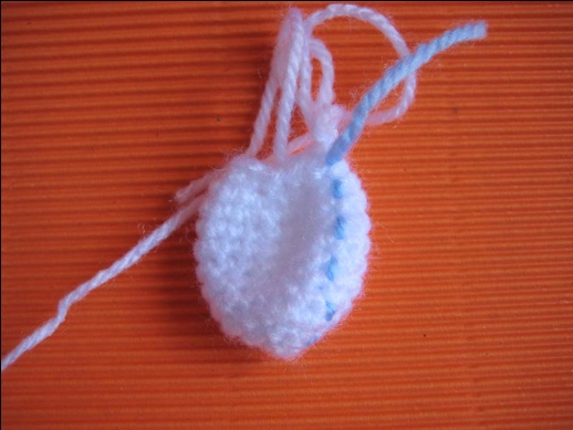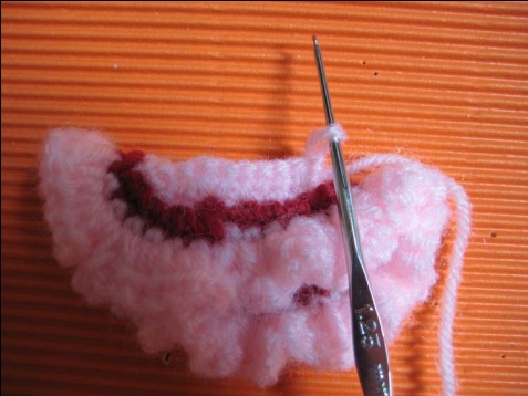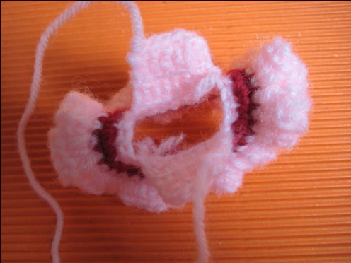 Row 4. 3sc in each stitch and around, then finish off, pink yarn (counting stitch is not important in this row)