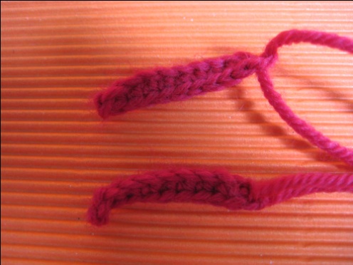 Make strip 2 pieces (red yarn)